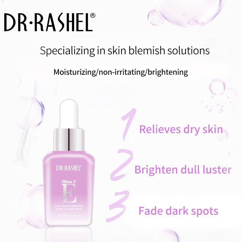 الفوائد: سيروم اصلاح البقع الداكنة بخلاصة فيتامين اي الذي يقلل من ظهور الخطوط الدقيقة والتجاعيد ويضيف الحيوية إلى بشرتك ، يحتوي فيتامين اي – على خصائص مضادة للأكسدة تقاوم الجذور الحرة وترطب البشرة وتساعد على إصلاح الجفاف والتلف. هذا السيروم سيجعل بشرتك تبدو متجددة وشابة ونضرة